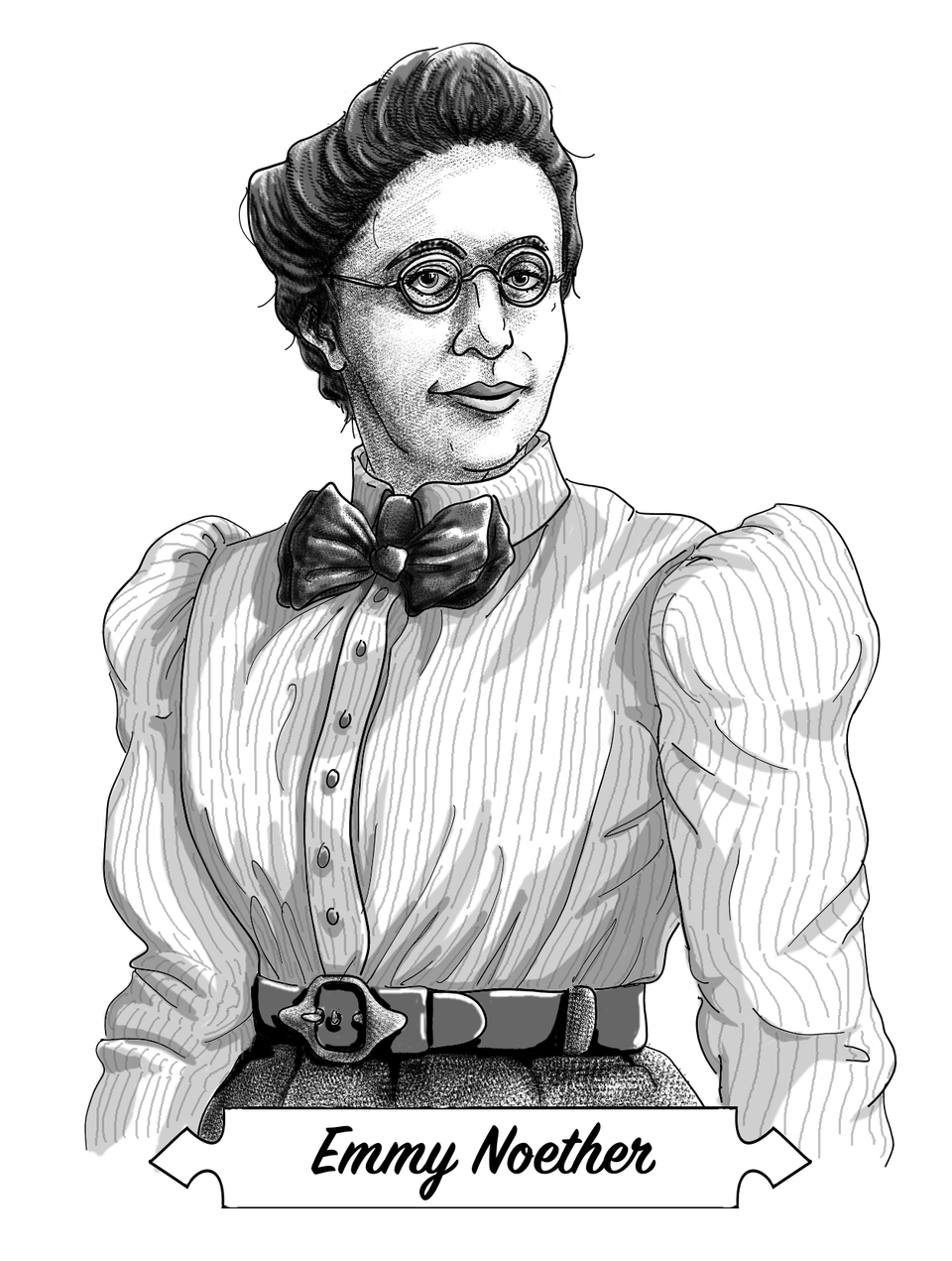There is a lot more that could be said about the obstacles Noether overcame, but let’s focus now on one of her accomplishments. In 1915, Noether proved what is now known as Noether’s theorem. This theorem has the surprising conclusion that there is a connection between the symmetry we see in math and the conservation laws in physics. From a simplified math perspective, symmetry occurs when things remain the same if we change a perspective or change time. You may not have thought of something that doesn’t change over time as being symmetrical. But Noether was able to prove that something that does not change over time is the same thing as the conservation of energy, that we cannot create nor destroy energy.