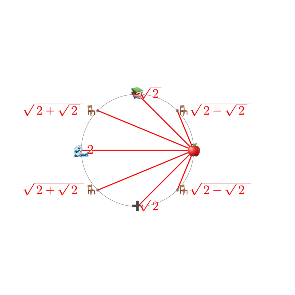 What if a group of actuarial friends pulled up chairs at a perfectly round dinner table? Not for business, but for a puzzle. Each time we measure the distances around this circle and multiply them together, strange patterns appear. At first the numbers look messy, full of square roots. But step back, and they collapse into something beautifully simple.